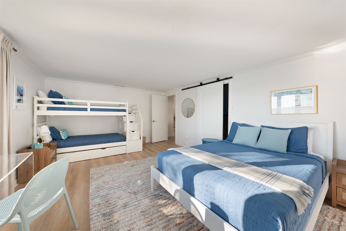 • Bedroom 3: Queen bed, twin bunk beds with trundle, desk & loft play area